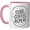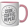 Code Coffee Repeat Programmer Developer Coder Life Ceramic Mug, Pink/White