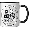 - Show your coder mindset with the bold Code Coffee Repeat message, capturing your caffeine fueled sprint cycles, late night debugging, and shipping mindset. You embrace clean commits, agile flow, and the daily loop that powers your dev life.