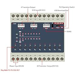 - PLC FX1S-20MT Programmable Logic Controller With 10 Input 10 Transistor Output, 2 High-Speed Pulse 100KHz for Sevor or Stepper, Have RS485 Port, Use DC 24V Power Supply (Mini-20MT-4MTS-DC Attention: 1. When outputting at point Y, the internal and negative terminals of the power supply are conductive 2. Connect the load directly, do NOT to connect it in reverse 3. It is prohibited to connect the Y point to the positive pole of the power supply 1. -- PLC Type: Fully compatible with FX1S, 10 Input 10 Relay Output (NPN Type), have 1 Way RS485 protocol which support RTU Modbus, 2 High-Speed Pulse (5V Single) 100KHz for Servo or Stepper 2. PLC software: Use GX Workers 2 or Developer (pls download from GX Workers 2 website, we only have Chinese version), support Command + T Ladder Diagram + SFC for programming 3. Programing: Use the same Type C-USB Cable for download program from PC to PLC, pls install PLC’s USB driver first (Driver CH4), which we will share. 4. Download Process: Exactly same as GX Workers 2, we have guidance to share RS485 supports two protocols: 1. Communicate with touch screen, select Mitsubishi protocol, PLC does not need to do any communication program 2. Communicate with other PLCs, choose RS free protocol, PLC needs to write programs 3. Does not support Modbus RTU protocol Packing List: 1 X 20MT-4MTS PLC 1 X Cable for RS485 protocol connection