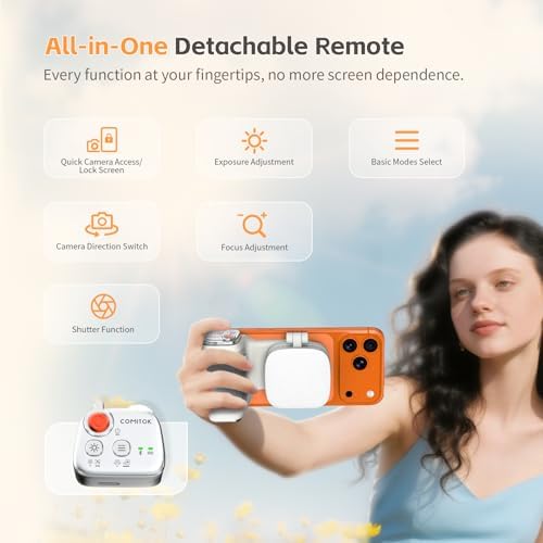 - [Multi-Functional Remote + Magnetic Secure] The detachable remote of the magsafe camera grip offers versatile control with features like switching camera modes, flipping cameras, adjusting exposure and focus, and quickly launching the native camera. The strong magnetic anti-drop design keeps the remote securely attached to the grip, preventing accidental falls and ensuring a stable, reliable setup for your shoots.