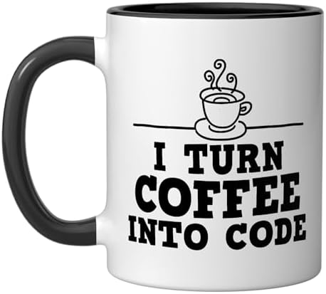 Programmer Coder Computer Nerd I Turn Coffee Into Code Ceramic Mug, Black/White