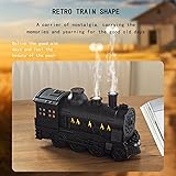 Unique Vintage Train Design: This vintage train diffuser combines the charm of classic steam trains with modern aromatherapy benefits. A stylish, eye-catching train humidifier that adds nostalgic flair to any home or office decor. Dual Mist Modes & 300ML Capacity: Enjoy continuous or intermittent mist with this train essential oil diffuser. The 300ml tank provides up to 10–12 hours of cool mist, ensuring lasting comfort without frequent refills. Aromatherapy & Air Moisturizing: Use as a train diffuser for essential oils or a standalone humidifier to refresh air quality, soothe dry skin, and fill your space with calming scents for better relaxation and sleep. Warm and Cool Blue Lighting Colors: The cool mist humidifier features two color lights mode and breathing lights mode. Light and fog functions can be used independently according to your needs. It's perfect for your bedroom, living room, or office desk. Safe, Quiet & Auto Shut-Off: This diffuser train operates whisper-quietly, ideal for bedrooms or workspaces. Built-in safety auto-off function activates when water runs low, making it safe for overnight use.