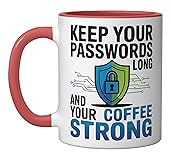 Cybersecurity Analyst IT Security Profession Cyber Security. This Keep Your Passwords Long And Your Coffee Strong is for a cybersecurity analyst who protects computer systems, networks, and data from cyber threats such as hacking, malware, and phishing. Searching for cyber security quotes? Proud of your job or profession? If yes, then this cybersecurity analyst design is for you. Ideal for an IT professional into IT security. 11-ounce ceramic mug is dishwasher and microwave-safe, lead and BPA free Features glossy finish with accent colors on interior, handle, and rim of two-tone designs
