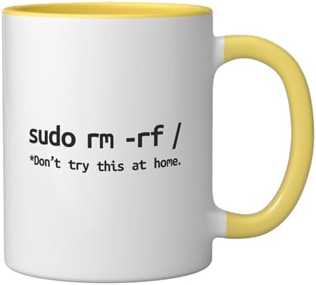 Linux Sudo rm rf Programmer, Engineer, Opensource Funny Ceramic Mug, Yellow/White
