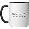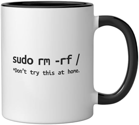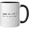 Linux Sudo rm rf Programmer, Engineer, Opensource Funny Ceramic Mug, Black/White