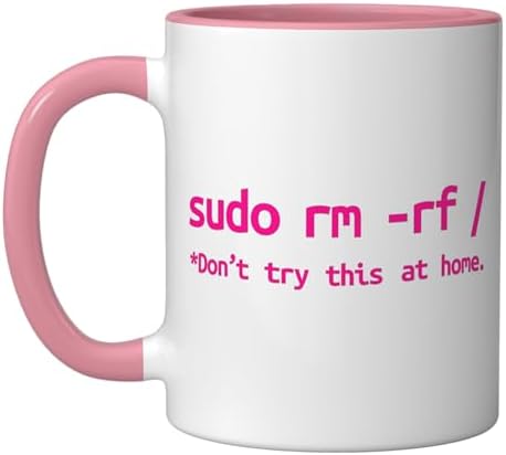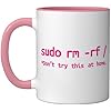 Linux Sudo rm rf Programmer, Engineer, Opensource Funny Ceramic Mug, Pink/White