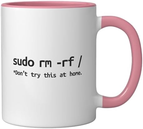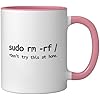 Linux Sudo rm rf Programmer, Engineer, Opensource Funny Ceramic Mug, Pink/White