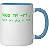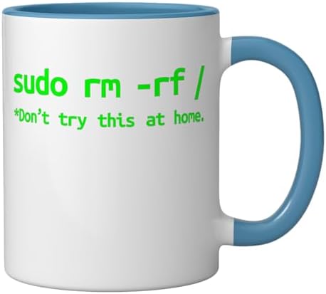 Linux Sudo rm rf Programmer, Engineer, Opensource Funny Ceramic Mug, Blue/White