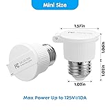 Onite 2-Pack Light Bulb Socket to Outlet Adapter, 3-Prong Plug E26 Socket Converter with Waterproof Flip Cover for Outdoor, Patio, Holiday Lights - 1250W Max, E26/E27 Base, White