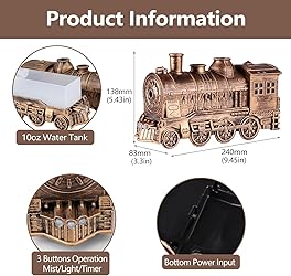 - Product features: 300ml Capacity. Dual Mist Outlets. 2/8 Hours Timing Function. Bedroom Office Desktop Home Decor. Improve Air for Bedroom Office Desktop. Product specification: Item Type: Train Humidifier Material: ABS, PP Current: 0.5A / 1A Capacity: 300ml Timing: 2/8 hours Size: Approx. 240 x 83 x 138mm / 9.4 x 3.3 x 5.4in Weight: Approx. 590g / 20.8oz Package List: 1 x Humidifier 1 x Accessory 1 x User Manual How To Use: Follow the instructions in the manual