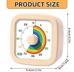 【Kids timer with Intuitive Visual Design】This 60 - minute visual timer features an Intuitive visual design that aids in enhancing focus and work efficiency, enabling effective time management. Its ideal placement in any location you need. The vibrant rainbow - patterned design is particularly appealing to children, sparking their interest and motivating them to complete assigned tasks more swiftly. 【Simple Operation & Silent Running】Setting the desired time is a breeze. Simply rotate the central knob of the visual timer for kids clockwise, and you can effortlessly start the countdown. It runs almost silently. Whether it's the child who studies diligently, or you who work hard, this silent function ensures uninterrupted concentration for both of you, free from any disturbances. 【Catering to Special Needs】This fantastic timers for classroom is suitable for people of all ages and ability levels, including those with autism, ADHD, or other learning disabilities. As a pomodoro timer, it facilitates smooth transitions between activities and helps alleviate stress in high - pressure situations, making it an invaluable tool for special needs individuals. 【Powerful Functionality & Wide Applicability】This multi - visual timer for classroom has a broad range of applications. It's not only perfect for classrooms and kitchens but also excels in various scenarios such as work, study, meetings, yoga sessions, group games, and entertainment time management. No matter what your time - keeping needs are, this timer can handle them with ease, fully meeting your requirements. 【Product Specifications & Premium Service】 Please note that this toddler timer requires 1 AA battery to operate (battery not included). If you encounter any issues while using the product, our dedicated team is always on hand to offer helpful advice and solutions, ensuring your complete satisfaction.