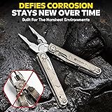 Premium Titanium Alloy Handle Multitool: Crafted from aerospace-grade titanium alloy for the handles, the multi-tool weights only 11oz, while offering superior hardness and corrosion resistance. This unbeatable strength-to-weight ratio ensures all-day carry comfort and durability for the toughest tasks High Carbon Damascus Knife: Upgraded with a stunning, hand-forged 58 layers Damascus steel main blade. Beyond its unique artistic pattern, 9Cr18M carbon steel provides exceptional toughness, edge retention, and shock resistance, four times sharper than ordinary steel knives T-Shank Interchangeable Tools: Go beyond the basics. This complete toolkit includes all essentials (needlenose/regular pliers, Damascus knife, scissors, screwdrivers, awl/ thread needle, ruler, can opener, strap cutter, etc.). The T-shaped handle interface design allows for quick replacement of compatible accessories, like wood/metal saw blade, diamond file, or scraper from the included kit One-Handed Operation: All key tools feature outside-accessible, one-handed opening for quick deployment without opening the pliers. Main implements are secured with reliable liner locks to prevent accidental closure. Its compact folding design makes it pocket-sized for easy carrying for outdoor activities The Perfect Gift: The unmatched blend of titanium alloy, Damascus knife, and Ready-to-Go package makes BIBURY BI2049TI Pro multitool is the definitive gift for outdoorsmen, DIYers, and preparedness enthusiasts. Perfect for Christmas, Valentine's Day, Father's Day, birthday, anniversary, and more
