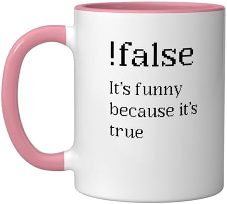 False Pun Funny Programming Programmer Coding Ceramic Mug, Pink/White