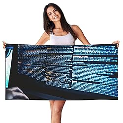 WPKJU Programmer Programming Code Printed Fleece Beach Towel 55x27.5 Inch, Soft and Quick-Drying for Beach, Pool and Camping, Black