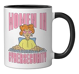 You are looking for an awesome cybersecurity design? Then is this funny computer science or cyber security design the right one. It's a great idea for cybersecurity specialists who love their job. Wear it proudly to work or in your free time. Get this now. This funny cybersecurity design for women and men who love their programming or data protection job. Show that you are a proud cybersecurity specialist. On the cybersecurity's motive is the quote Women In Cybersecurity. 11-ounce ceramic mug is dishwasher and microwave-safe, lead and BPA free Features glossy finish with accent colors on interior, handle, and rim of two-tone designs