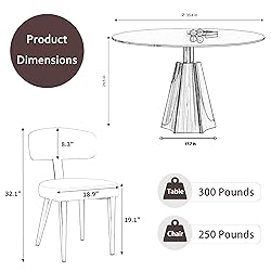 Complete 3-Piece Set: Includes 35.4in round dining table and 2 matching boucle dining chairs, offering a coordinated look for effortless dining room decor. 35.4in Diameter Round Glass Dining Table: Perfect size for small dining areas, apartments, or breakfast nooks, providing ample space for 2 people to dine comfortably. The 0.4" Thick brown glass is more distinctive and of superior quality compared to the 0.31" clear glass surface. White Boucle Fabric Chairs: Soft, textured boucle upholstery offers a cozy seating experience while adding a chic, luxurious touch to your dining space. Mid-Century Modern Aesthetic: Combines sleek silver finish, a sculptural table base, and retro-inspired chair designs for a stylish statement in any modern home. Sturdy & Durable Construction: High-quality materials ensure long-lasting use, making this dining set a reliable choice for daily meals and gatherings.