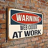 - Give a Fun Gift of an Official Web Coder at Work Warning Sign with a Timeless Vintage Look! Celebrate their job or hobby with this high-quality, humorous Warning Web Coder at Work Sign. Designed in a classic, vintage warning style, this plaque is the perfect personalized accent for a workshop, garage, office door, man cave, or home studio. It makes a fantastic, unique gift that is sure to get a laugh from the recipient and their guests. Engineered for Professional Durability: Unlike cheap tin or plastic, this Web Coder at Work sign is built to last a lifetime. It is crafted from Durable Aluminium Composite Material (ACM), a rigid, robust substrate designed for commercial-grade longevity. The vibrant, vintage-style graphics are applied via a high-quality print and finished with a UV-protected coating. This superior construction ensures the sign is 100% weatherproof, fade-resistant, and completely rust-proof, making it ideal for permanent installation both indoors and outdoors without fear of decay. Quick Installation & Safe Finish: The sign is lightweight yet structurally sound and comes equipped with two perfectly pre-drilled holes and smooth rounded corners. This provides a safe, professional finish and allows for quick, secure, and hassle-free installation on any wall, fence, or door.