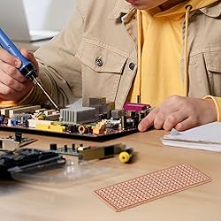 Precise 2.54mm Spacing & Universals Size: Features a 9x25 hole layout with 2.54mm hole spacing and 1.0mm diameter, perfectly sized at 1x2.6 inches to accommodate a wide range of standard electronic components for reliable prototyping. Simplified Point-to-Point Circuit Building: Designed specifically for point-to-point soldering, these boards facilitate seamless circuit migration from breadboards, eliminating the need to re-cut wires or redesign your layout. Sturdy Single-Sided Copper Pads: Constructed with single-sided, pre-plated copper holes that ensures sturdy solder joints, significantly reducing welding difficulty and enhancing the efficiency of your electronic assembly process. Clear Layout for Easy Debugging: The high-visibility design provides an intuitive and clear overview of your circuit paths and component placement, enabling quick fault identification and simplified troubleshooting. 20-Pack for Continuous Projects:This bulk pack of 20 reusable bakelite boards provides ample supply for various DIY electronics projects, experiments, and circuit tests, supporting students, engineers, and hobbyists.