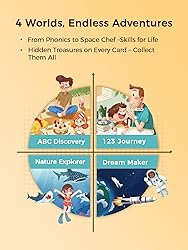 What’s Included: This learning bundle comes with a Think Academy X100 Learning Pad, 35 Starter Cards (70 themes), 60 Little Explorer Cards (120 themes) and 58 My First Joy of Learning Cards (116 themes). This bundle educates while entertaining, making it the perfect Christmas/Birthday gift for kids aged 3 4 5 6 306 Themes of Exploration: Kids Learning Pad X100 includes 35 double-sided starter cards (70 themes). The Little Explorer Pack adds 60 durable, waterproof cards (120 themes) across 4 worlds: About Me, Daily Life, Animals, and Space. My First Joy of Learning Pack adds 58 durable, waterproof cards (116 themes) across 4 worlds: My First ABC Discovery, My First 123 Journey, My First Nature Explorer, My First Dream Maker Screen-Free Learning: Are you concerned about your children's excessive exposure to electronic screens? This complete bundle offers 300+ themes of immersive learning through tactile cards and our touch-responsive pad – no harmful screen glare, just active engagement Develop Essential Skills: Hands-on interaction nurtures six core skills (creativity, imagination, curiosity, concentration, logical thinking, and hand-eye coordination) while the Explorer Cards add science, culture, and social-emotional learning for holistic growth Touch, Play, and Learn: Combine the X100 Learning Pad's Exploration/Game Modes with the Explorer Cards’ dual-path system (Free Discovery & Challenges) for deeper retention. Kids progress from basic concepts to advanced topics like space science at their own pace