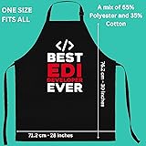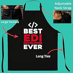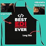 A FIT FOR EVERYONE: With an adjustable neck and long ties, it fits most body types for men and women. DURABLE POLY-COTTON: This apron's poly-cotton fabric is tough on stains and simple to wash. This Best Edi Developer Ever Apron is the perfect Christmas or Birthday Idea for Edi Developers. Edi Developer Apron for Men or Women. The Worlds Best Edi Developer . POCKETS FOR CONVENIENCE: Keep items you need in the two conveniently placed front pockets.