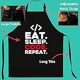 ARTbyPAW Programming Apron Eat Sleep Code Repeat, Funny Gift for Software Engineer, One Size Fits All for Women Men