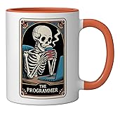 The Programmer Tarot Card Developer IT Software Engineer design for web developer, software engineer and programmmers who loves writing code and have tech humor. For programmer, sys admin and any computer science student geek. Funny software engineer design for developer and computer experts. For long coding nights, at software development job during computer engineering for coding nerds and coder. 11-ounce ceramic mug is dishwasher and microwave-safe, lead and BPA free Features glossy finish with accent colors on interior, handle, and rim of two-tone designs