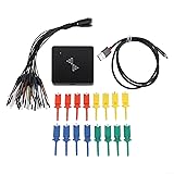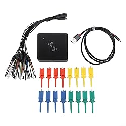 - Features:* 16-channel dual-mode support: ① Stream mode can capture and transmit data in real time to achieve long-term sampling; ② Buffer mode can temporarily capture and store data to achieve high sampling rate.* 2.0 interface, sampling depth up to 16G in stream mode.* Support adjustable threshold and shield line for better and clearer waveform.* 256Mbits onboard SDRAM memory, support for multiple buffer modes.* For WinXP-for Win10, for macOS and for Linux, supports nearly 100 protocol decoders, and open source on.Specifications:Part Name: Logic AnalyzerMaterial: MetalColor: BlackNumber of Channels: 16USB Transfer Rate: USB2.0 (480bps)Sampling Rate in Buffer Mode: 400MHz @ 4 Channels / 200MHz @ 8 Channels / 100MHz @ 16 ChannelsSampling Rate in Stream Mode: 100MHz @ 3 Channels / 50MHz @ 6 Channels / 25MHz @ 12 Channels / 20MHz @ 16 ChannelsMinimum Sampling Pulse Width: 5nsMaximum Sampling Signal: 100MHzMaximum Sampling Depth: 16G in Stream Mode / 256M in Buffer ModeMaximum Sampling Duration in Stream Mode: 160 seconds @ 100M / 4 hours @ 1M / 19 days @ 10KHardware Memory: 256MbitsThreshold: 0-5V (Step Size 0.1V)Input voltage: -30V~+30VInput impedance: 250KΩ//~13pFState sampling: up to 50MHzSupported operating systems: Win, for Mac OS, for LinuxSize: 3.1*2.9*0.4 inchesPackage contents:1 x logic analyzer4 x shielded wire set1 x USB 2.0 data cable16 x test hooks1 x English manual