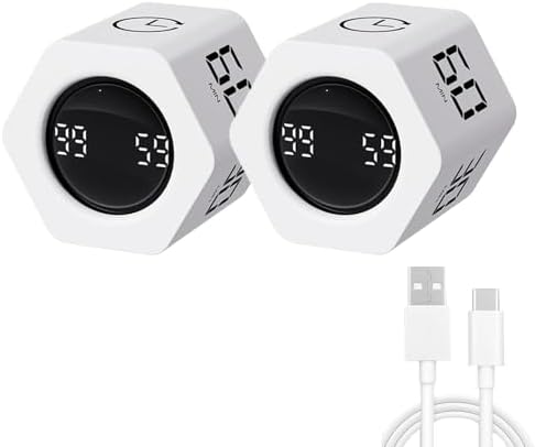 Productivity Timer Flip Gravity Sensor Cube Timer Countdown & Countup,Mute & Vibrate & Sound,5/10/30/60min & Custom Timing, Perfect for ADHD,Work,Learning,Kitchen Cooking (2, White Hexagon)