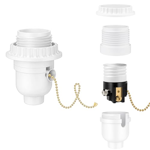 UL Listed E26 Light Socket, Threaded Lamp Socket Replacement with Pull Chain Switch Medium Base Lamp Parts with Lamp Shade Ring Ring for Table lamp, Floor lamp, Light Fixture, White 1-Pack