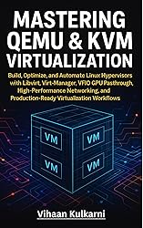- Mastering QEMU & KVM Virtualization is the complete hands-on guide to building fast, secure, and automated Linux hypervisors using QEMU, KVM, Libvirt, virt-manager, VFIO GPU passthrough, ZFS, cloud-init, Terraform, and Ansible. Designed for system administrators, DevOps engineers, and serious homelab builders, this book teaches you how to create a production-ready virtualization platform using only open-source tools.You’ll learn how to install and optimize QEMU/KVM, configure high-performance networking, write clean Libvirt XML templates, automate VM creation, implement GPU and PCIe passthrough, deploy ZFS storage and live migration, and tune VMs for real workloads. Every chapter includes practical labs, real configurations, and repeatable examples.The book finishes with a full two-node KVM cluster project featuring automated provisioning, GPU workloads, monitoring dashboards, replication, live migration, and backup/restore validation—giving you the skills to build and operate virtualization environments with confidence.Perfect for: Linux admins, DevOps engineers, virtualization specialists, and homelab enthusiasts who want a modern, 2025-ready, production-grade QEMU/KVM skillset.