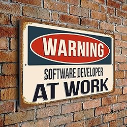 - Give a Fun Gift of an Official Software Developer at Work Warning Sign with a Timeless Vintage Look! Celebrate their job or hobby with this high-quality, humorous Warning Software Developer at Work Sign. Designed in a classic, vintage warning style, this plaque is the perfect personalized accent for a workshop, garage, office door, man cave, or home studio. It makes a fantastic, unique gift that is sure to get a laugh from the recipient and their guests. Engineered for Professional Durability: Unlike cheap tin or plastic, this Software Developer at Work sign is built to last a lifetime. It is crafted from Durable Aluminium Composite Material (ACM), a rigid, robust substrate designed for commercial-grade longevity. The vibrant, vintage-style graphics are applied via a high-quality print and finished with a UV-protected coating. This superior construction ensures the sign is 100% weatherproof, fade-resistant, and completely rust-proof, making it ideal for permanent installation both indoors and outdoors without fear of decay. Quick Installation & Safe Finish: The sign is lightweight yet structurally sound and comes equipped with two perfectly pre-drilled holes and smooth rounded corners. This provides a safe, professional finish and allows for quick, secure, and hassle-free installation on any wall, fence, or door.