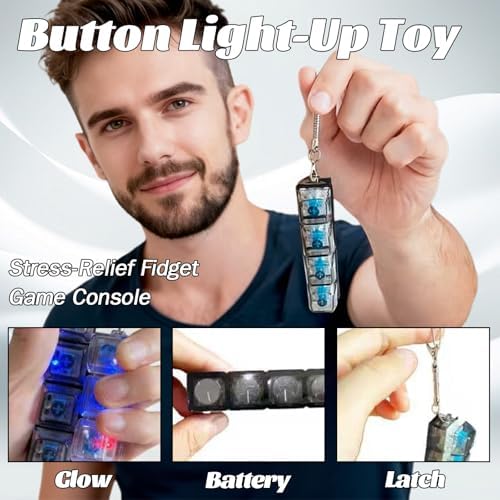 - ✅【2 Pack LED Keyboard Fidget Keychain Value】Get 2 transparent keyboard keychain (black + white) in one set! Each keyboard clicker fidget has 4 responsive buttons + glowing LEDs—share with friends, keep one at home/office, or gift this popular fidget toy.