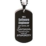 - Looking for a gift that speaks volumes? This I'm A Software Engineer, My Level of Sarcasm Depends on Your Level of Stupidity Black Stainless Steel Dog Tag is the answer. Designed for the modern Software Engineer, this necklace features a classic military-style tag measuring 2.8 x 5.2 cm. The surface is polished to a shine and engraved with the text. The text is laser-engraved for maximum durability, ensuring the message stays sharp year after year. It's a rugged, stylish, and thoughtful way to make a statement. This meaningful keepsake is the perfect choice for birthdays, graduations, anniversaries, or Christmas. Whether you are looking for a thoughtful surprise or a unique stocking stuffer, this necklace fits the bill. It is a wonderful way to express your love to your Software Engineer on a special day or simply just because.