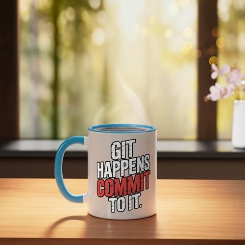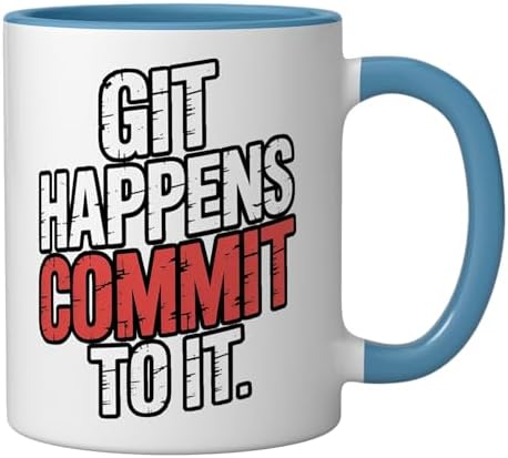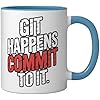 Git Happens Commit To It Dev Workflow Programmer Coder |- Ceramic Mug, Blue/White