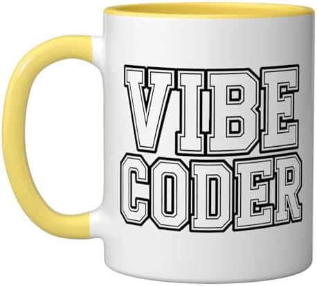Vibe Coder Software Programmer Developer Coding ||- Ceramic Mug, Yellow/White
