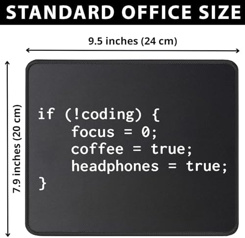 Code in comfort and style with this programmer-themed mouse pad, the ideal desk accessory for the software developer, web designer, or IT professional. Enjoy syntax-smooth gliding and pixel-perfect accuracy from the micro-textured cloth surface, optimized for all mouse sensors from laser to optical. This mousepad stays put (no 404 errors here) thanks to a heavy-duty, non-slip rubber base that grips your desk firmly. Built to last through countless deployments and coffee-fueled all-nighters, it features robust anti-fray stitched edges and a waterproof, easy-to-clean surface, making it the perfect tech gift for any computer science pro or coding enthusiast.