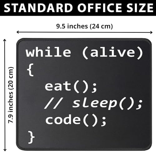 Code in comfort and style with this programmer-themed mouse pad, the ideal desk accessory for the software developer, web designer, or IT professional. Enjoy syntax-smooth gliding and pixel-perfect accuracy from the micro-textured cloth surface, optimized for all mouse sensors from laser to optical. This mousepad stays put (no 404 errors here) thanks to a heavy-duty, non-slip rubber base that grips your desk firmly. Built to last through countless deployments and coffee-fueled all-nighters, it features robust anti-fray stitched edges and a waterproof, easy-to-clean surface, making it the perfect tech gift for any computer science pro or coding enthusiast.