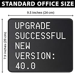 ULTRA-SMOOTH SURFACE: Optimized fine-weave texture ensures pixel-perfect tracking and responsive control for all optical and laser mice. Perfect for Gaming and high-precision tasks. NON-SLIP & STABLE: Heavy-grip, textured rubber base prevents unwanted movement, keeping the mouse pad firmly secured on your desk for maximum control. This funny design with text "upgrade successful new version: 40.0" is perfect 40th birthday present or outfit for coder, computer programmer, or application developer that turned 40 years old mousemat Great mousemat outfit and present for techie, programmer, or computer nerd to celebrate 40th birthday mousepads WATERPROOF & DURABLE: Features anti-fray stitched edges and a spill-resistant coating for easy cleanup and long-term durability. A reliable desk mat built to last.
