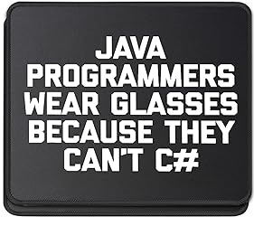 ULTRA-SMOOTH SURFACE: Optimized fine-weave texture ensures pixel-perfect tracking and responsive control for all optical and laser mice. Perfect for Gaming and high-precision tasks. NON-SLIP & STABLE: Heavy-grip, textured rubber base prevents unwanted movement, keeping the mouse pad firmly secured on your desk for maximum control. Funny mousemat programmer mousepad: java programmers wear glasses because they can't # mouse pad funny saying java programmer sarcastic novelty humor cute cool Funny programmer mousepad, mousemat funny programming mousepad, funny java mousepad WATERPROOF & DURABLE: Features anti-fray stitched edges and a spill-resistant coating for easy cleanup and long-term durability. A reliable desk mat built to last.