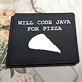 ULTRA-SMOOTH SURFACE: Optimized fine-weave texture ensures pixel-perfect tracking and responsive control for all optical and laser mice. Perfect for Gaming and high-precision tasks. NON-SLIP & STABLE: Heavy-grip, textured rubber base prevents unwanted movement, keeping the mouse pad firmly secured on your desk for maximum control. If you are programmer, computer science student, major or software developer, then this funny programmer gift mousepad for software engineers is for mousemat you. The java programmer mouse pad also makes great gift for students and computer science majors. Funny java programming joke programmer mouse pad java developer features unique design and lets you hop onto the statement fashion trend. Wear the java coding mouse pad classroom or at home. The programmer mousemat mousepad for java developer who likes pizza fits. WATERPROOF & DURABLE: Features anti-fray stitched edges and a spill-resistant coating for easy cleanup and long-term durability. A reliable desk mat built to last.