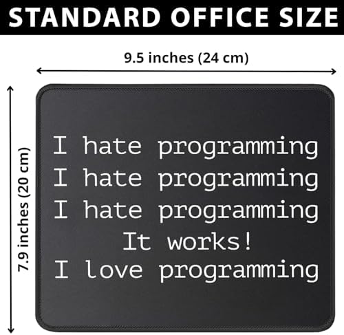 Code in comfort and style with this programmer-themed mouse pad, the ideal desk accessory for the software developer, web designer, or IT professional. Enjoy syntax-smooth gliding and pixel-perfect accuracy from the micro-textured cloth surface, optimized for all mouse sensors from laser to optical. This mousepad stays put (no 404 errors here) thanks to a heavy-duty, non-slip rubber base that grips your desk firmly. Built to last through countless deployments and coffee-fueled all-nighters, it features robust anti-fray stitched edges and a waterproof, easy-to-clean surface, making it the perfect tech gift for any computer science pro or coding enthusiast.