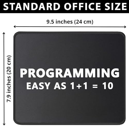 Code in comfort and style with this programmer-themed mouse pad, the ideal desk accessory for the software developer, web designer, or IT professional. Enjoy syntax-smooth gliding and pixel-perfect accuracy from the micro-textured cloth surface, optimized for all mouse sensors from laser to optical. This mousepad stays put (no 404 errors here) thanks to a heavy-duty, non-slip rubber base that grips your desk firmly. Built to last through countless deployments and coffee-fueled all-nighters, it features robust anti-fray stitched edges and a waterproof, easy-to-clean surface, making it the perfect tech gift for any computer science pro or coding enthusiast.