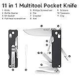 NexTool Knight K30 Multitool,11-in-1 Pocket Knife Multi tool with Axis Lock,Serrated Scissors,Tweezers,Awl,4mm 10-in-1 Bit Set for DIY、Repairs、Gifts