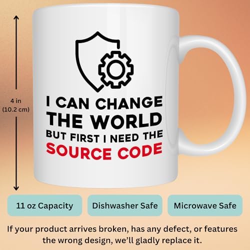 Programmer Coffee Mug Funny Source Code Cybersecurity Hacker, Software Engineer Gift, 11 oz Ceramic