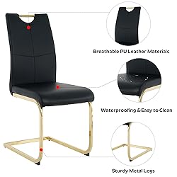 KATBOC 5-Piece Dining Table Set for 4, Modern Rectangular Glass Table with 4 Upholstered Leather Chairs, Space-Saving Dining Room Furniture Table & Chair Sets for Small Spaces & Apartment(Black&Gold)