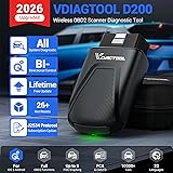 【Lifetime FREE Software Updates – One-Time Purchase, No Subscription】Stay future-ready with the VDIAGTOOL D200 Bluetooth OBD2 scanner. Enjoy lifetime free software updates with no hidden fees or subscriptions. This professional obd2 scanner diagnostic tool continuously expands vehicle coverage, optimizes functions, and adds new features—keeping your car diagnostic scanner compatible with newer vehicles and systems year after year. A smart long-term investment for home car owners, serious DIYers, and technicians. Supports vehicles from 1996+. Contact us with VIN to confirm compatibility before purchase. 【Full Bidirectional Control / Active Tests – Diagnose with Confidence】The D200 odb2 scanner is a true bidirectional scan tool that lets you send commands directly to the vehicle’s ECU for active tests. Quickly test fuel pumps, relays, solenoids, injectors, cooling fans, windows, sunroofs, and more to verify operation instantly. Reduce guesswork, avoid unnecessary parts replacement, and confirm repairs faster. Get dealership-level diagnostic control at a fraction of the cost—perfect for advanced DIYers and professional technicians. 【OE-Level Full System Diagnostics & Up to 8 Graphing】VDIAGTOOL D200 obd 2 scanner is a all system bidirectional obd2 scanner that accesses all available vehicle systems, including Engine, Transmission, ABS, SRS, BCM and more, delivering accurate fault codes, system status, and live data. It supports up to 8 PIDs with real-time graphing, enabling visual comparison of sensor values, performance trends, and quick detection of abnormal behavior. helping you spot sensor issues, performance trends, and intermittent faults faster. Whether diagnosing warning lights or performing full system health checks, the D200 delivers fast, reliable, data-driven diagnostics you can trust. 【26+ Essential Reset & Relearn Functions – Everyday Maintenance Made Easy】Handle common maintenance and repair jobs without visiting the shop. The D200 code readers & scan tools includes 26+ high-demand reset functions, including Oil Reset, EPB Service, Crank Relearn, BMS Battery Registration, SAS Calibration, ABS Brake Bleeding, Throttle Relearn, Injector Coding, Crankshaft Sensor Relearn, Headlight Adjustment, Tire Size Reset, and more. Covers most daily service needs across American, European, and Asian vehicles. Note: Service functions vary by vehicle—please confirm compatibility before purchase— support @ vdiagtool. com. 【Expandable Power: 49+ Advanced Resets & 100+ Vehicle-Specific Functions】Your core car diagnostics and 26 reset functions remain lifetime free for everyday maintenance. When you need deeper repair capability, upgrade with optional 3-year access ($169), gaining 49+ advanced resets and 100+ vehicle-specific functions like zero-point calibration, AdBlue Reset, and more. Designed by VDIAGTOOL for users who own multiple obd-ii scanner, this lets you access less-used advanced functions without buying a higher-end obd scanner. Not required for daily use, but adds flexibility and professional depth—D200 bluetooth obd2 scanner grows with you, on your terms. 【Optional J2534 P*a*s*s-Thru Programming】Turn your D200 car diagnostic tool into a professional J2534 pa*s*s-thru programming interface with a one-time Lifetime Unlock ($199). Supports 17+ major brands, including for BMW, for Audi, for GM, for Ford, and more. Perform module programming, software re~flashing, and ECU data updates directly—upgrade only what you need, without new hardware. Designed to give repair shops and technicians greater flexibility, D200 car code reader and reset tool addresses most repair needs in a single scanner for car.-- Please check OEM software compatibility and PC requirements before order OE software, as D200 does not provide any OE software. 【Wide Vehicle Coverage with CAN FD & FCA AutoAuth Support】Built for modern vehicles, the D200 car scanner supports CAN FD protocols and official FCA AutoAuth access, enabling secure diagnostics for Chrysler, for Dodge, for Jeep, for Fiat (2018+) and for GM CAN FD models (2020+). This advanced car diagnostic scanner allows deeper communication with protected modules found in newer vehicles. Note: FCA AutoAuth subscription is not included and must be purchased separately via the official FCA website. 【Multi-Language Support including Spanish】Designed for worldwide use, this escaner automotriz en español offers support for 23 languages, including Portuguese, making it an excellent choice for global auto service professionals. To switch languages, simply contact us at support at vdiagtool . c o m after receiving the device and provide your device serial number—our support team will assist you in activating your preferred language for a smooth, user-friendly diagnostic experience. 【Mobile Mechanic, Car Protector on the Go & 2-Year VdiagTool Product Care】Powered by stable BT5.2, the D200 diagnostic scanner for all vehicles turns your smartphone into a pocket-sized, professional diagnostic workstation. Read and clear codes, run active tests, view live data, and perform resets—at home, in the garage, or on the road. Compact, fast, and reli~able, it’s perfect for users who want professional-level diagnostics without bulky auto scan tools. For any questions - support @ vdiagtool. com.