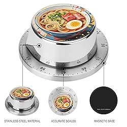 Premium Stainless Steel Material: Crafted from durable stainless steel with saucer-shape design, this Doodle Style Noodles mechanical timer combines robust construction with elegant aesthetics for reliable long-term kitchen use. Magnetic Mounting Versatility: Featuring a strong magnetic base, this visual timer securely attaches to metal surfaces like refrigerators and microwaves while offering stable desk placement for flexible positioning. Loud Audible Alarm: Equipped with a distinct alarm that can be heard from adjacent rooms, this countdown timer ensures perfect cooking results without requiring constant monitoring. Manual Mechanical Operation: Utilizing precise mechanical movement without batteries, this timer clock provides consistent performance while reducing environmental waste and maintenance needs. Multi-Surface Functional Design: Ideal for kitchen, office, and educational environments, this mini timer serves cooking, baking, classroom activities, and productivity tracking with clear visual countdown.