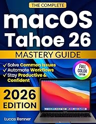 - Master macOS Tahoe 26 the Smart, Stress-Free Way—Without Feeling Overwhelmed by New Updates Do the constant macOS changes leave you confused or unsure what to press? Are you worried you’re not using Apple Intelligence to its full potential? Do you want to stay productive and confident—without relying on tech-savvy friends to fix things for you? The real frustration isn’t the Mac… it’s the endless guesswork. Every update brings new menus, new settings, and new features—yet most guides drown you in jargon or skip the real-life problems you face every day. That leads to wasted time, unnecessary stress, and a constant fear of “messing something up.” This mastery guide gives you a clear, visual, step-by-step path to understanding macOS Tahoe 26, using Apple Intelligence effectively, solving issues fast, and automating everyday tasks so your Mac finally works for you—not against you. Here’s what’s in this guide. You will learn:How to use Apple Intelligence confidently without feeling overwhelmedHow to fix common macOS issues in minutes instead of hoursHow to streamline your workflow with simple automation shortcutsHow to protect your privacy & data using built-in tools you already haveHow to organize files, photos, and emails with clarity and controlHow to stay productive through every new update—without starting from zeroEven if you’re “not techy”… …you can follow these straightforward lessons for just a few minutes at a time and finally feel in control of your Mac—without stress, confusion, or trial-and-error learning. Scroll to the top of the page and select Buy Now or Add to Cart to master macOS Tahoe 26 with ease and confidence.