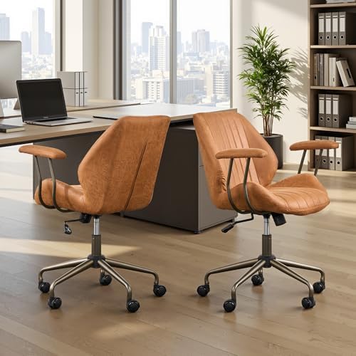 - 【Mid-Century Modern Desk Chair with Ergonomic Lumbar Support】 Experience the perfect union of iconic mid-century modern design and science-backed comfort. This desk chair features a contoured backrest with built-in lumbar support that actively cradles your spine to reduce lower back pain, while its wide 19” seat relieves pressure on hips and thighs. The premium suede upholstery and tapered legs offer timeless style for your home office, ensuring you look and feel great all day.