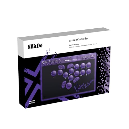 8BitDo All-Button Arcade Controller for Switch & Windows – 3 Connection Modes, Low-profile Linear Switches, 4 Programmable Buttons, Hot-swappable PCB - Transparent Purple Signature Edition